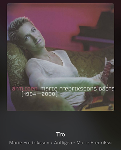 Vi betar av flera av våra populära testlåtar, en är inte någon audiofil skapelse, startar med ett elpiano och diverse effekter. Marie Fredriksson sjunger "Tro" och efter intro kommer kompet och det är tight och djupt, senare kör och fullt ös i låten. Låter väldigt lätt "too much" och elektriskt. Så icke med AMP 1!