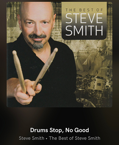 På Steve Smith:s låt Drum's stop, No good" Finns dynamik I alla register och våldsamma baspukor som träffar i mellangärdet. På samma gång är det oerhört definierat och delikat återgivning. Steget har en lite flytande organisk spelstil i all upplösning som påminner om Vinnie Rossis ljudsignatur.