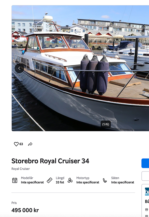 Vad får man nu för båt för en halv miljon? Om man vill ha en rymlig familjebåt kan man ladda med en 50 år gammal men renoverad Storebro enligt bild.