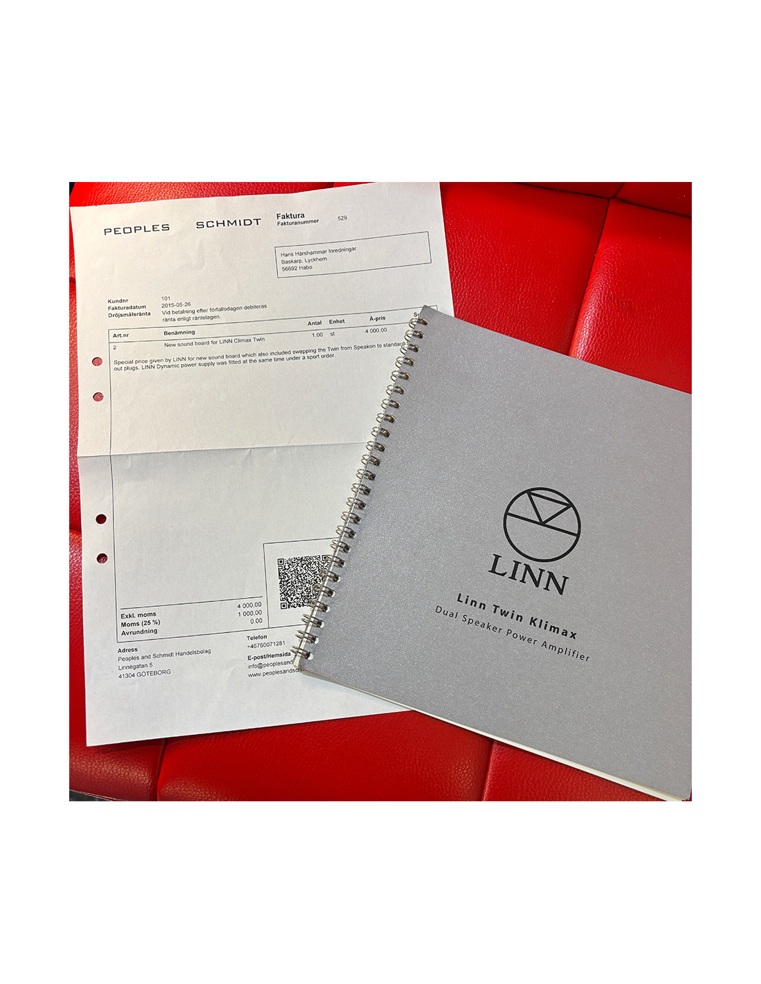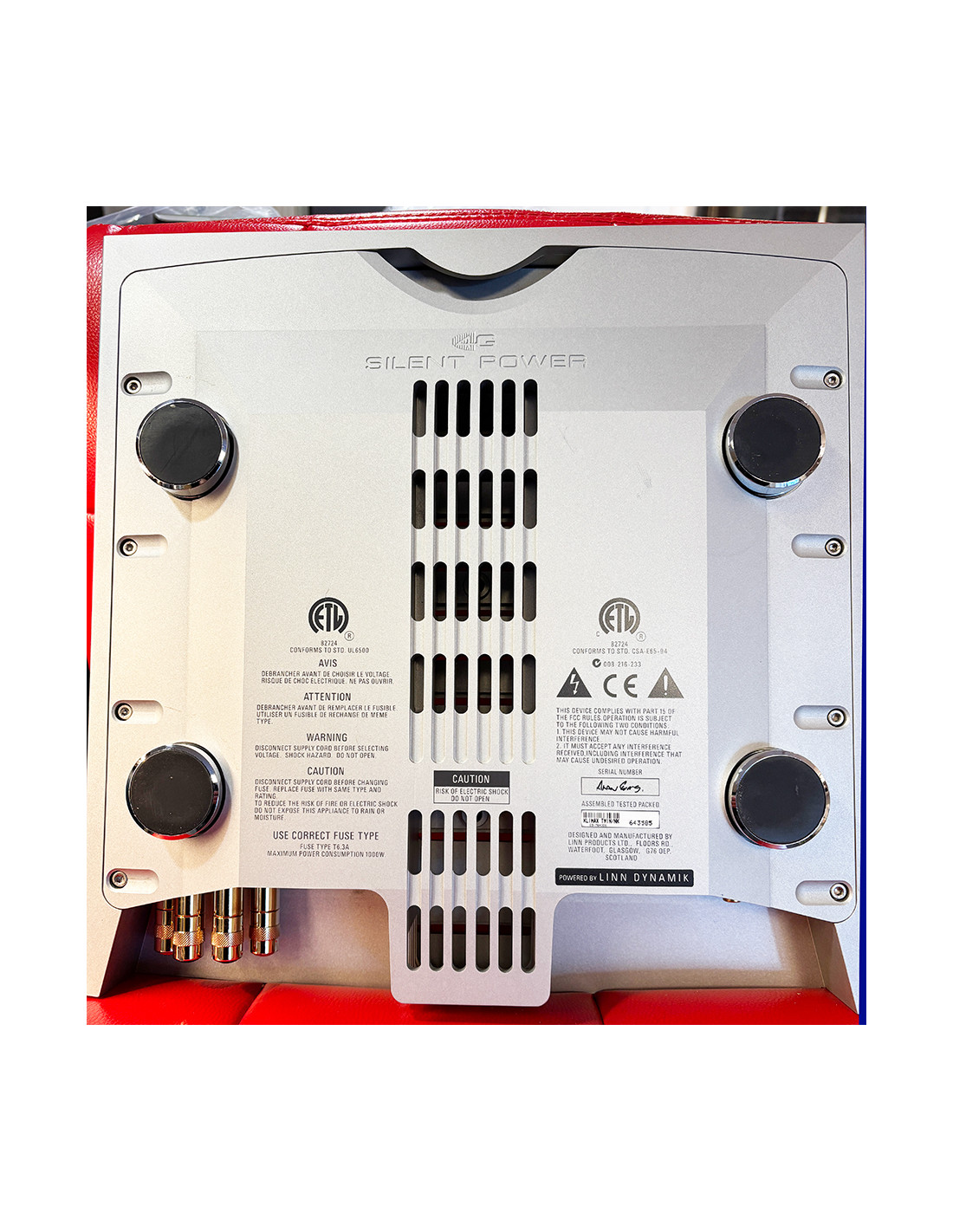 Uppgraderat med "vanliga" kontakter (i stället för speacon) samt Linn Dynamic Power supply. Gjort av auktoriserad Linn-verkstad. Dokument finnes.