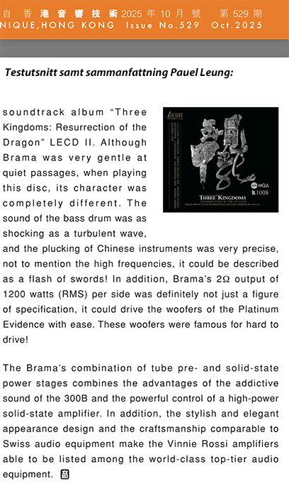 Vinnie Rossi Brama Mk2 PRE är ett av världens bästa försteg. Byggt i en kvalitet som få kan matcha och ett ljud kanske ingen kan matcha. Med Western Electric 300B effektrör i försteget har Vinnie hittat något alldeles eget.